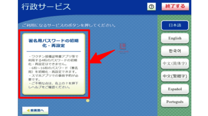 Chọn chức năng đặt lại mật khẩu JPKI