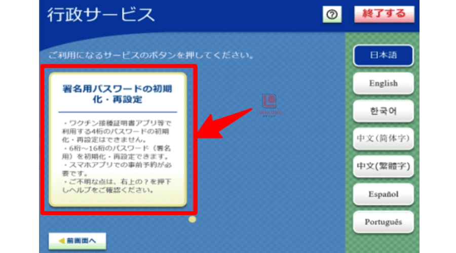 Chọn chức năng đặt lại mật khẩu JPKI