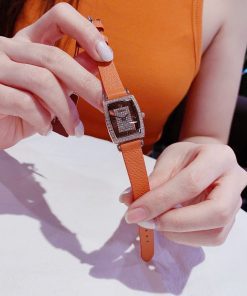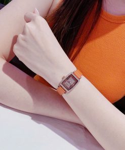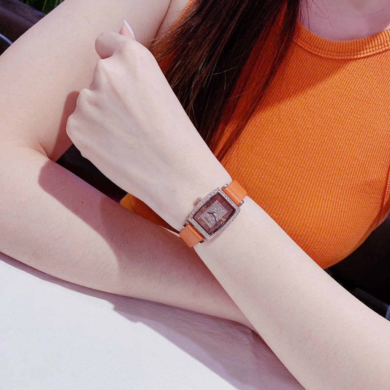 Thiết kế: Mặt chữ nhật – dáng nhỏ gọn tương đương ~28mm mặt tròn, thanh lịch khi đeo