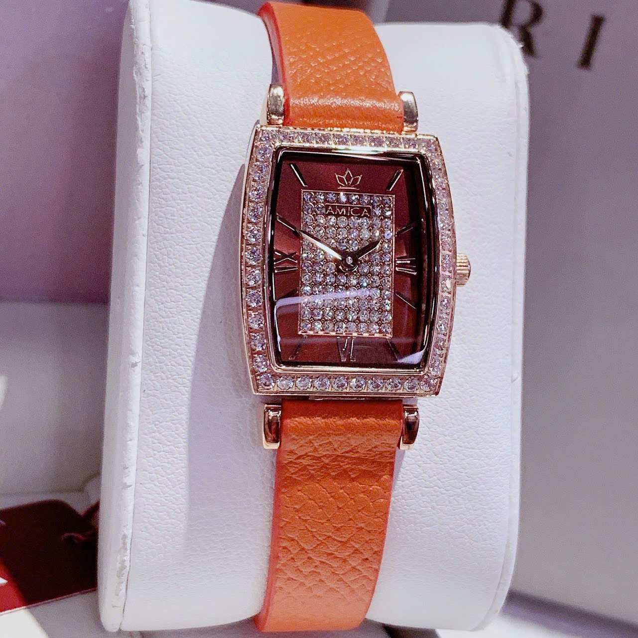 ✨ AMICA A052 – Dây cam mặt nâu, thiết kế nhỏ xinh tinh tế và sang trọng