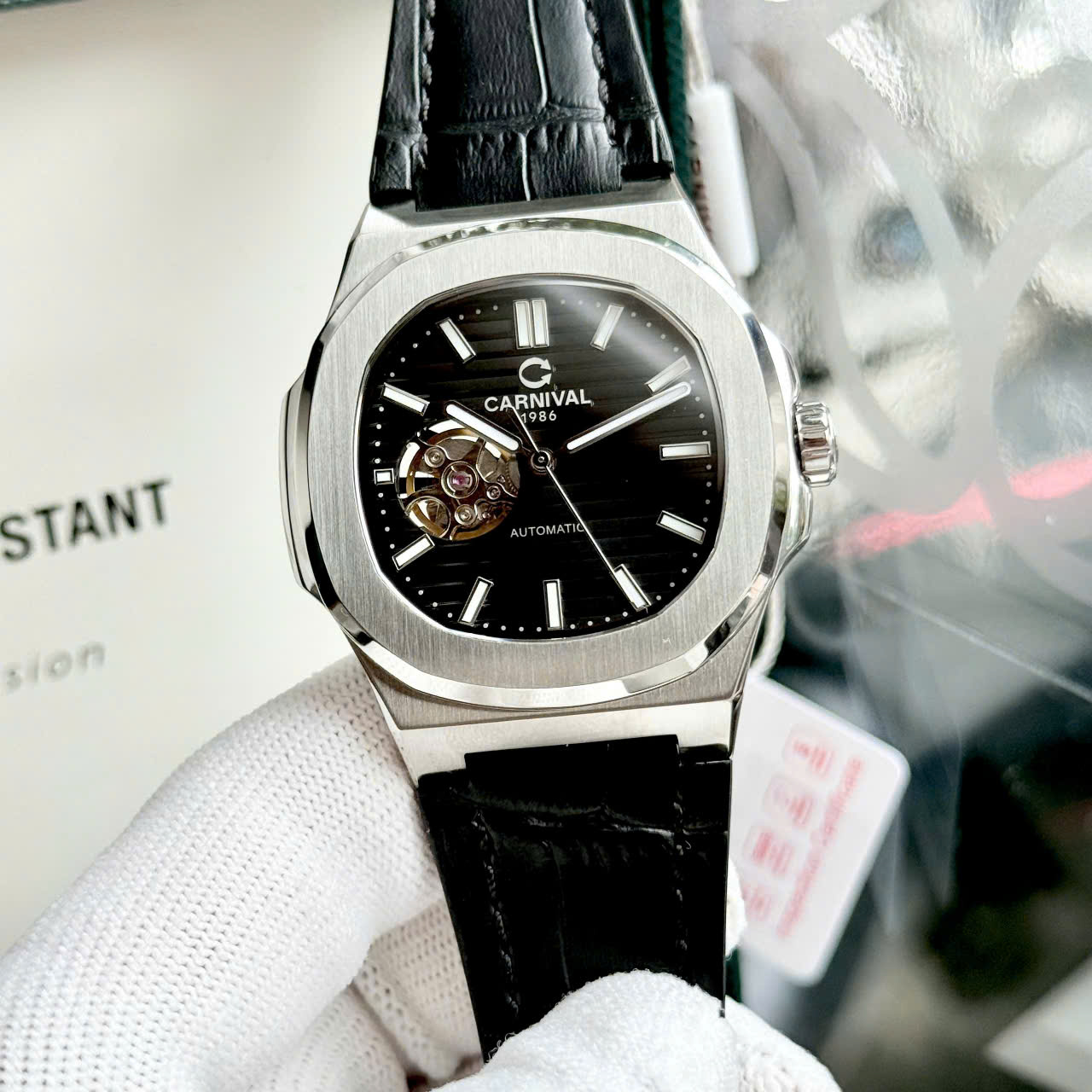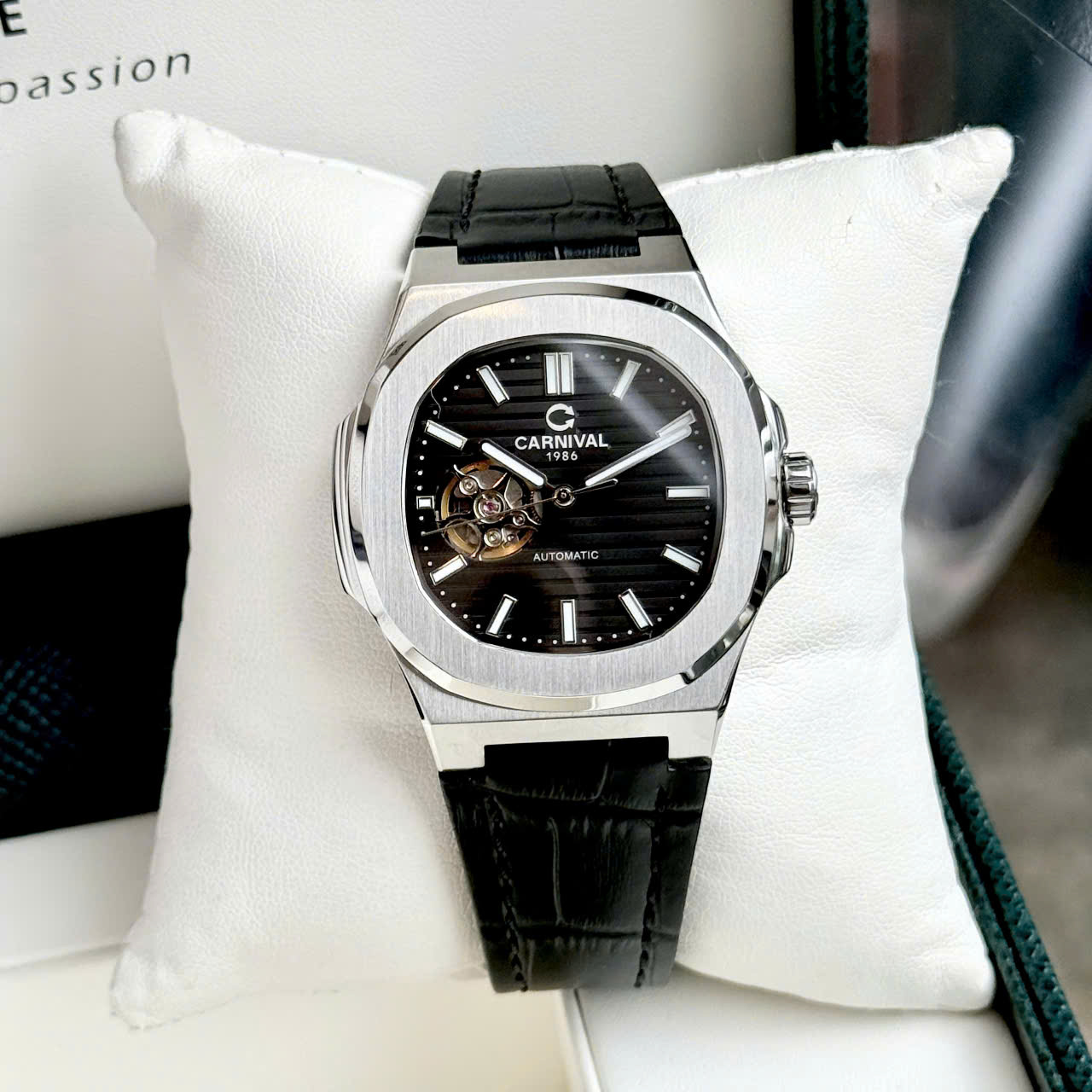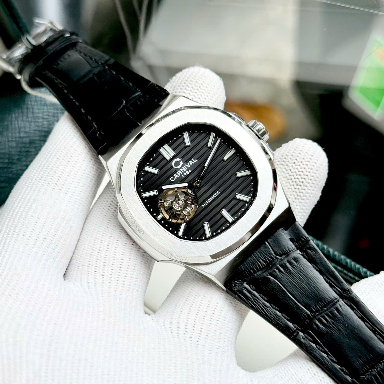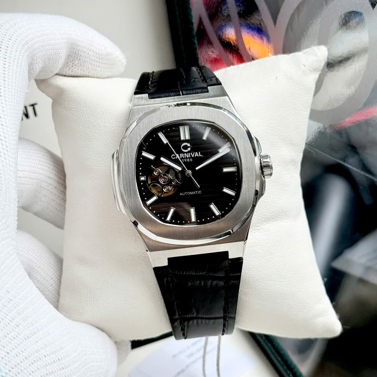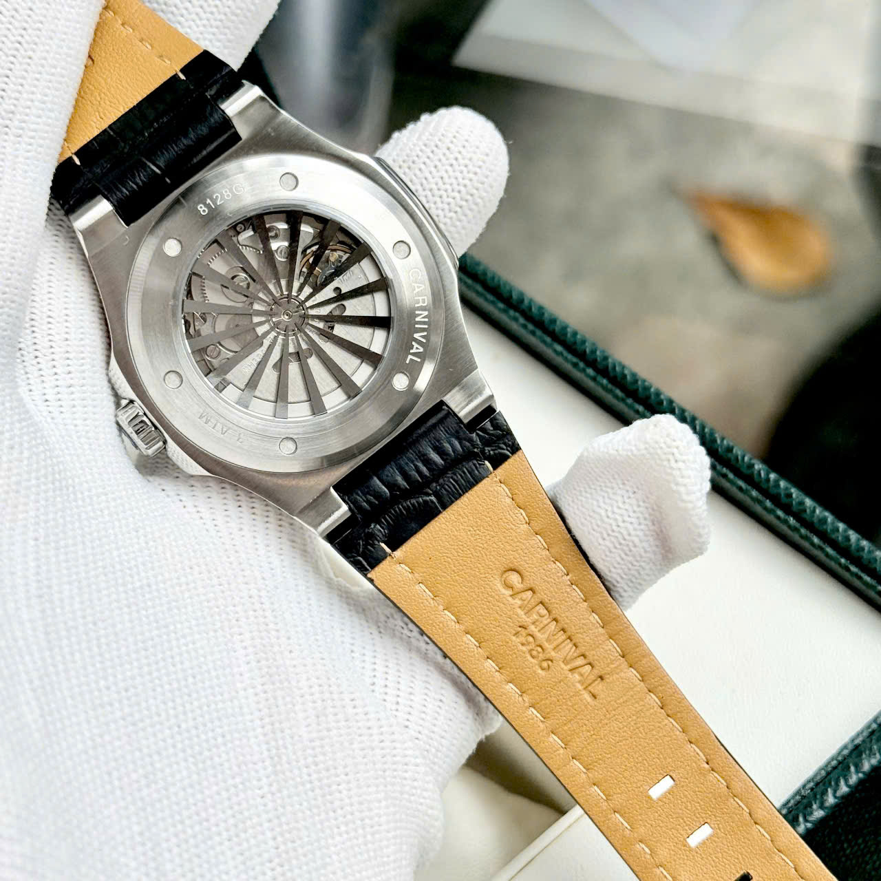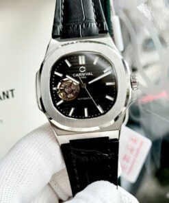 Carnival 8128G – Dây Da – Mặt Đen Open Heart
