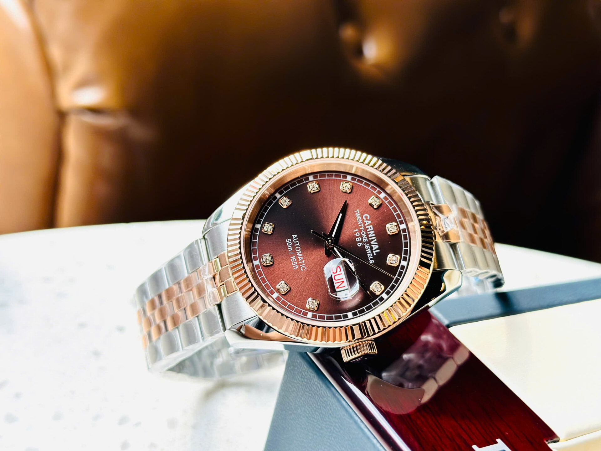 • Thiết kế: Mặt dial màu cà phê – lịch lãm, thu hút mọi ánh nhìn