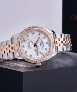 Thiết kế: Viền đá sang trọng, phong cách lấy cảm hứng từ dòng Datejust huyền thoại