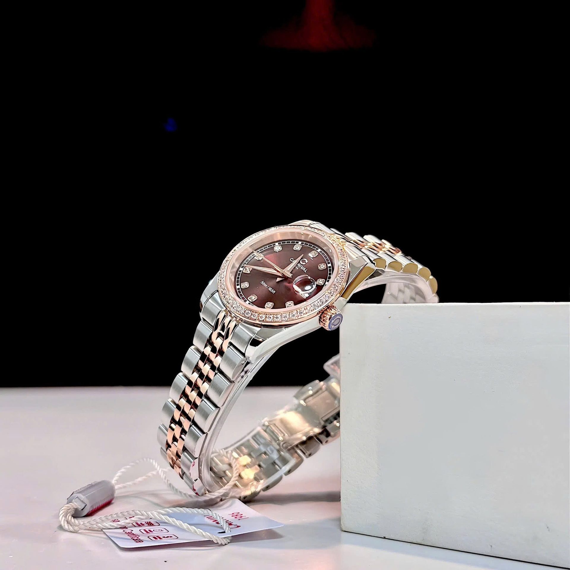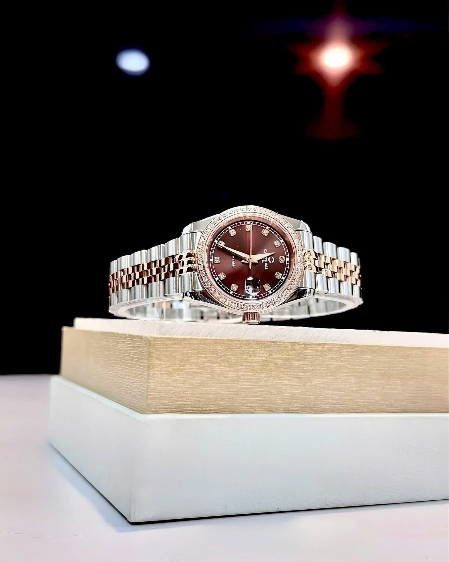 • Mặt số: Nâu cafe kết hợp viền đá – lấp lánh, nổi bật