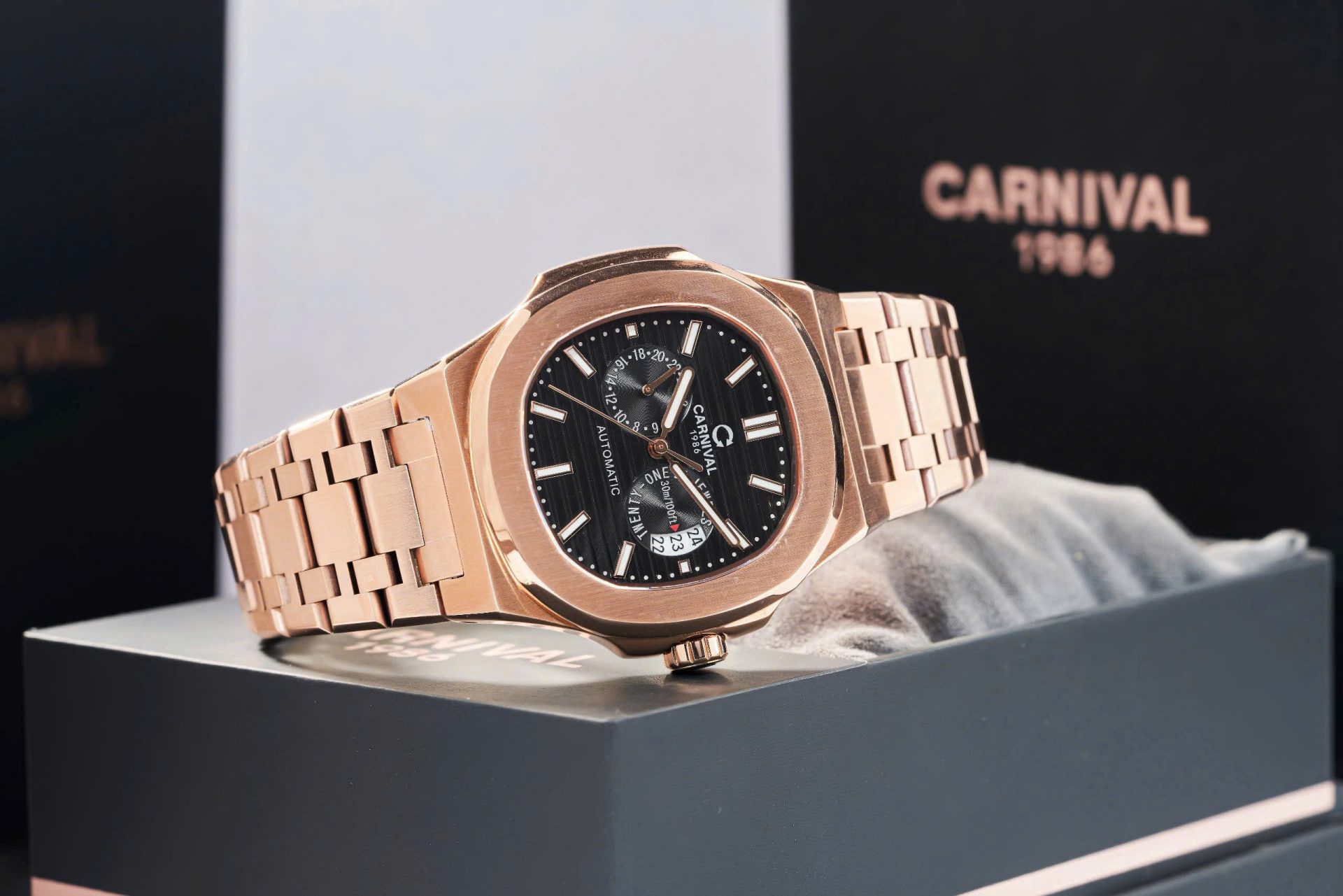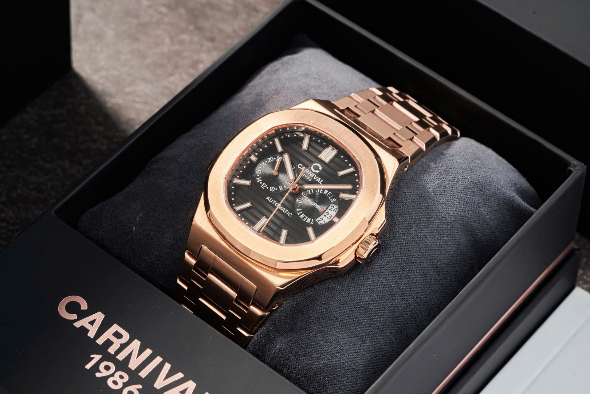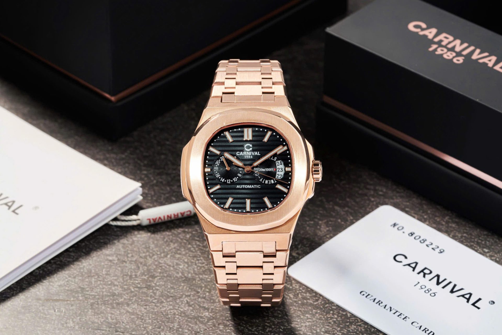 ✨ Carnival 8158G-VH-D – Thiết Kế Lịch Đôi, Dial Đen Vỏ Gold Sang Trọng