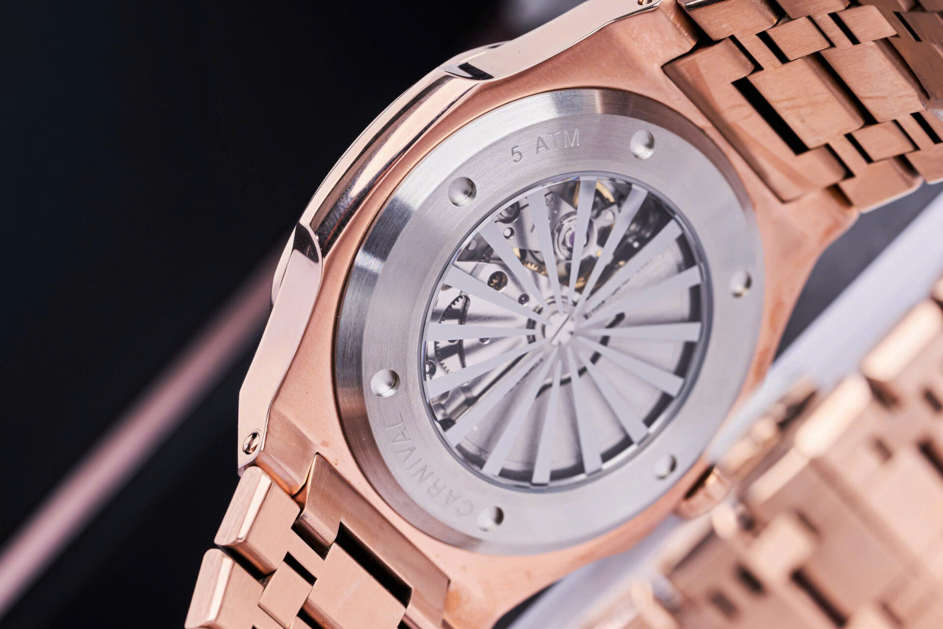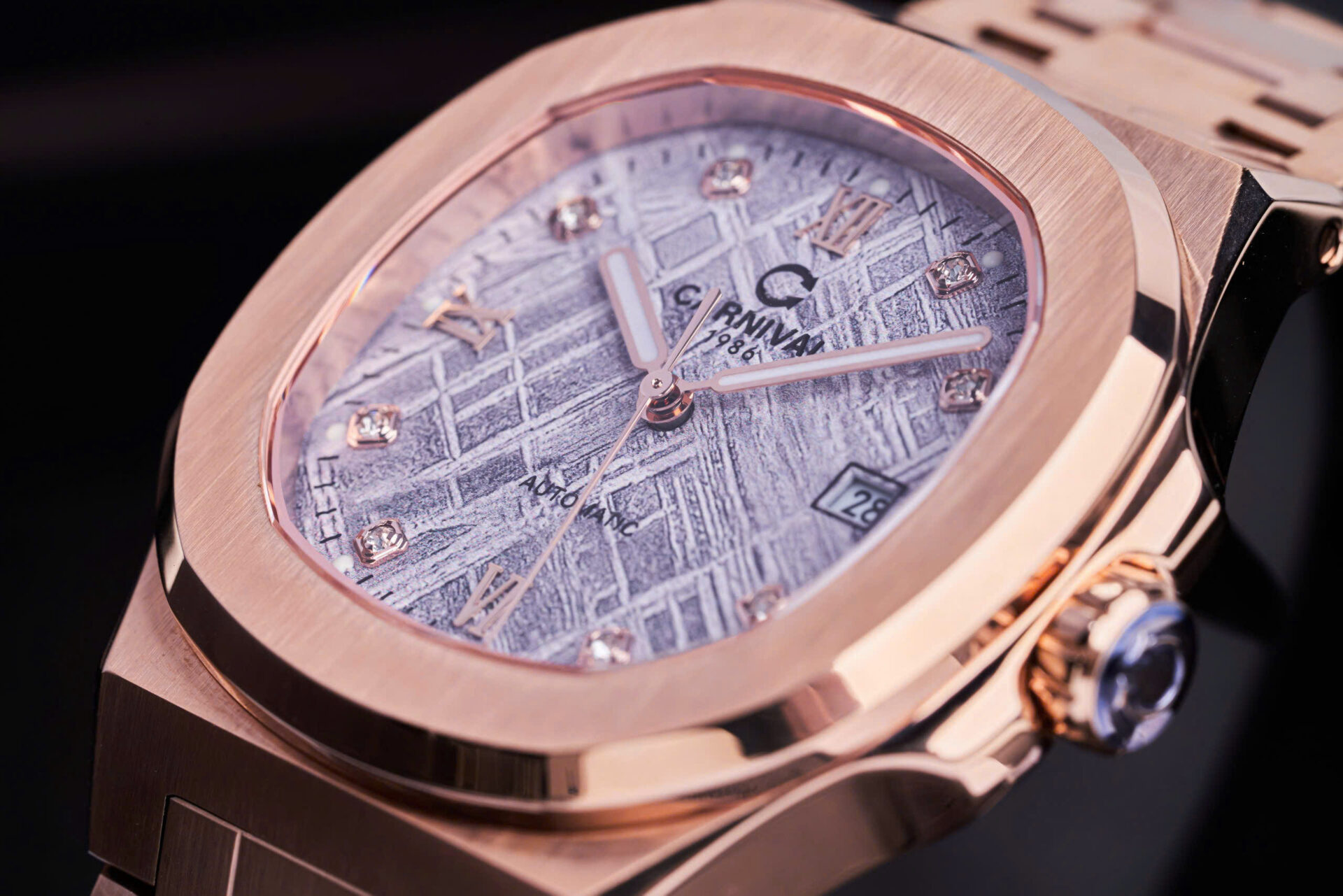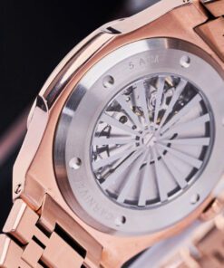 • Thiết kế: Mặt số vân thiên thạch độc đáo – kết hợp bộ vỏ mạ vàng hồng đầy tinh tế, thu hút mọi ánh nhìn