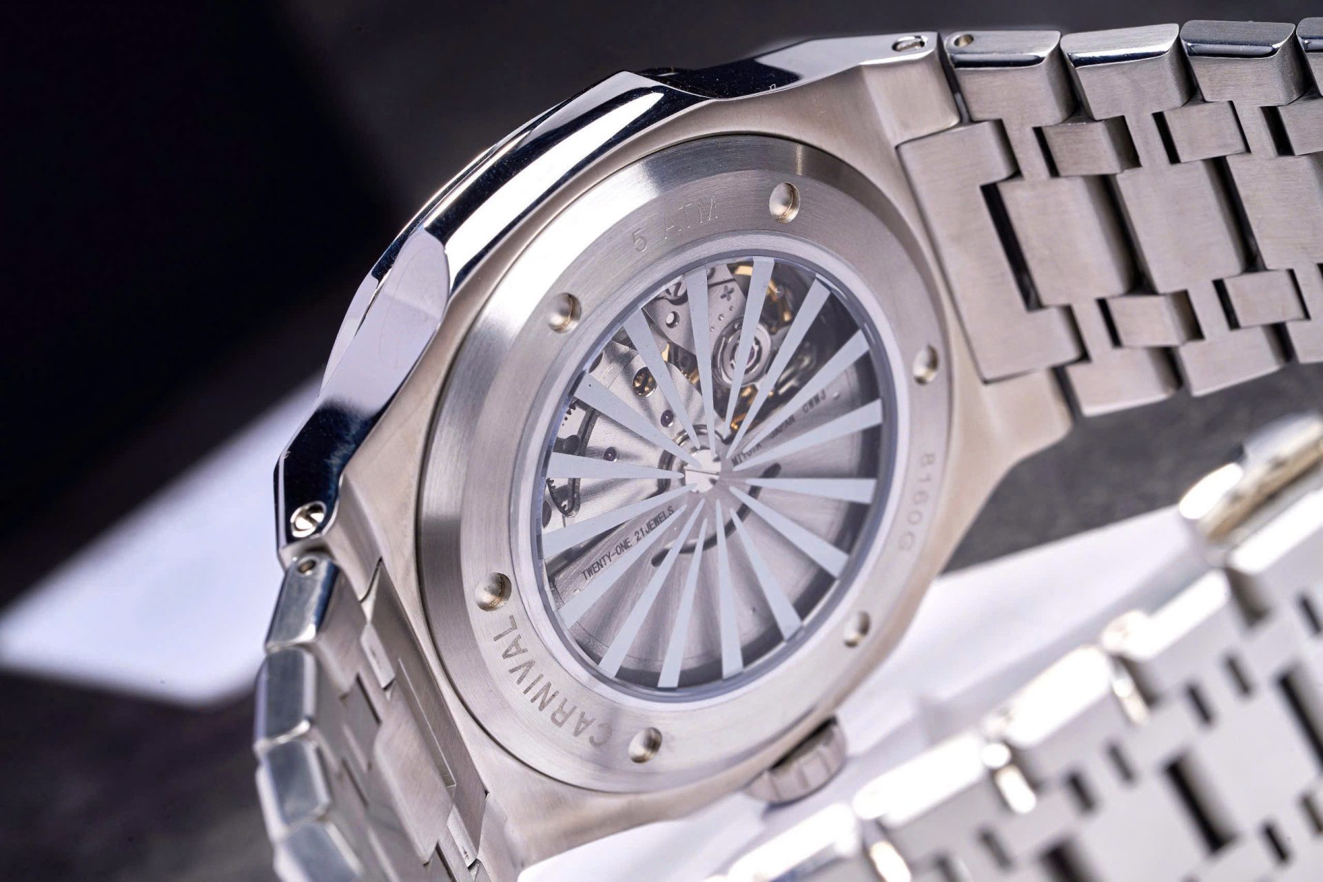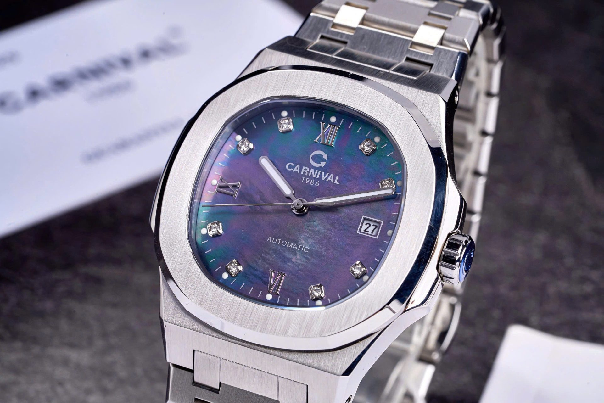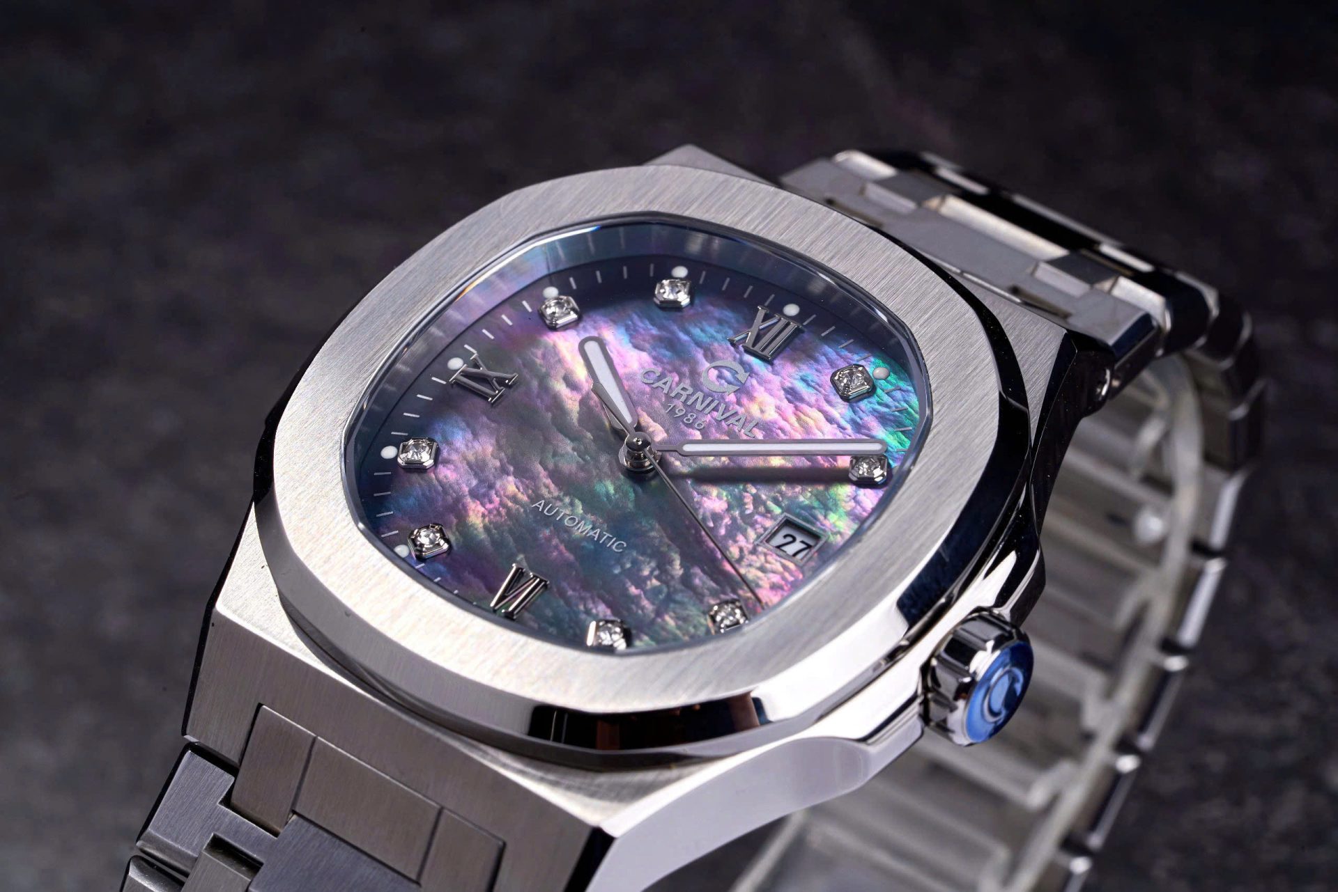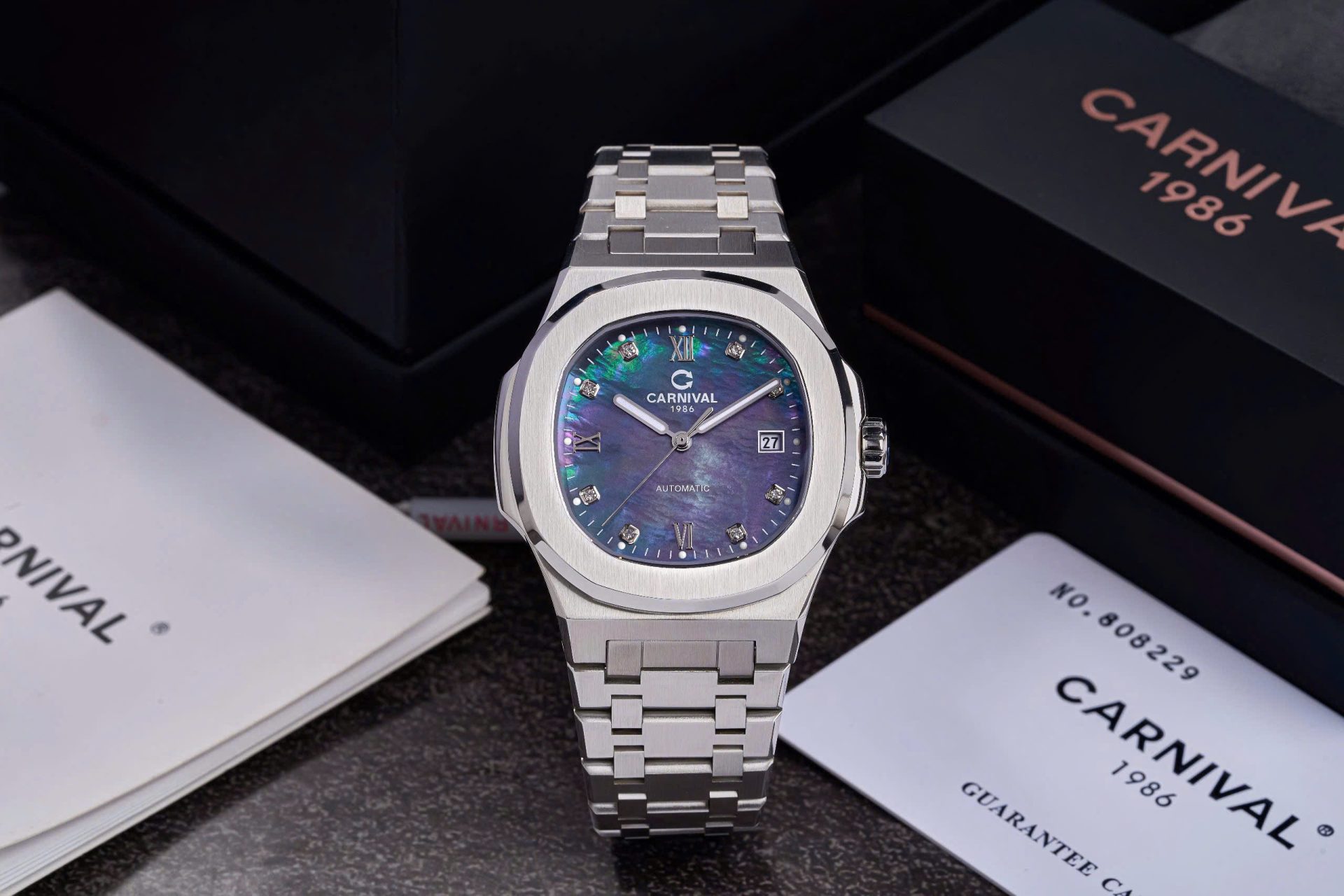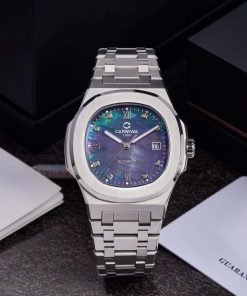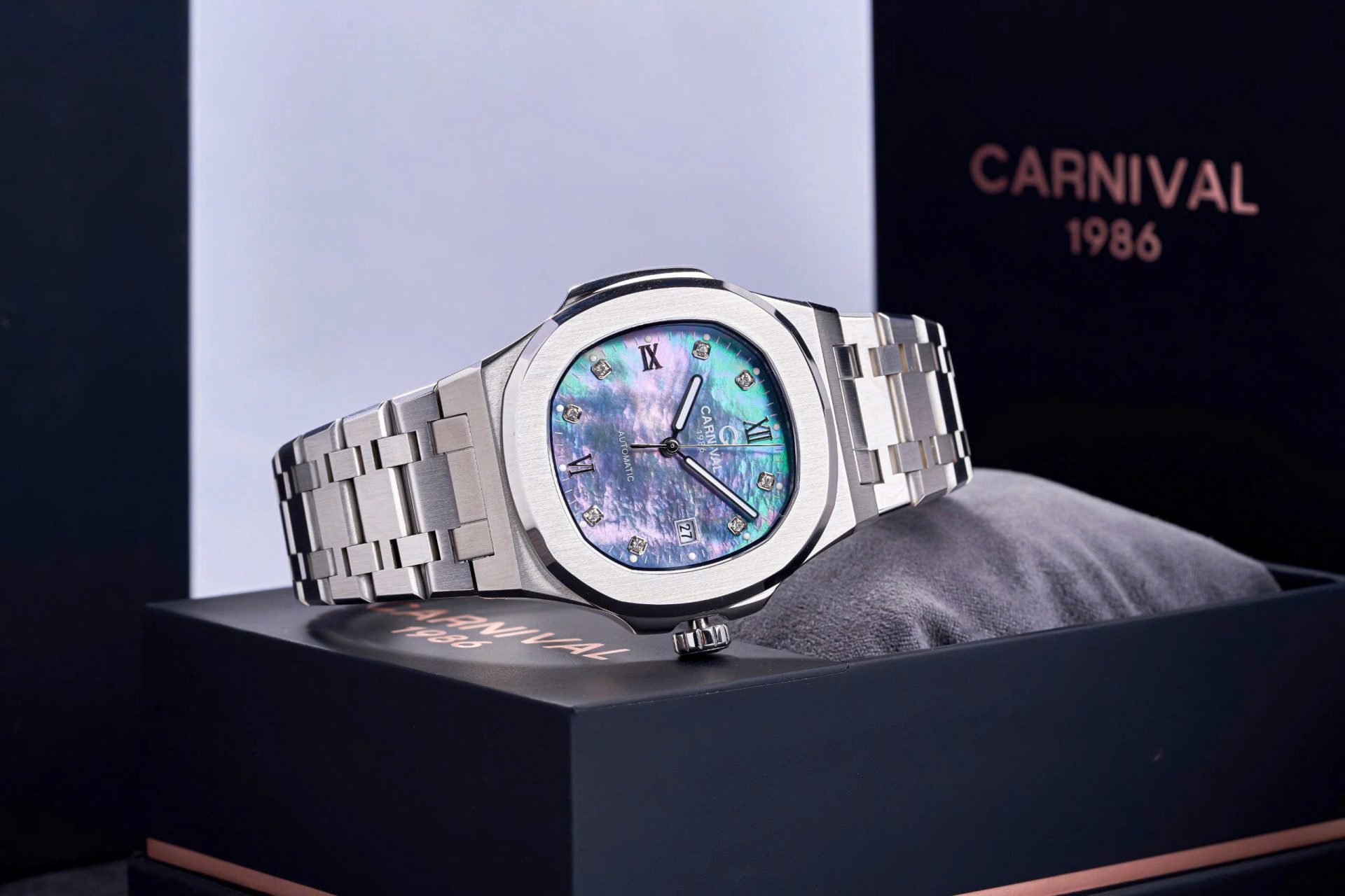 • Thiết kế: Dáng Nautilus, mặt khảm trai mới ra mắt – sang trọng, huyền bí