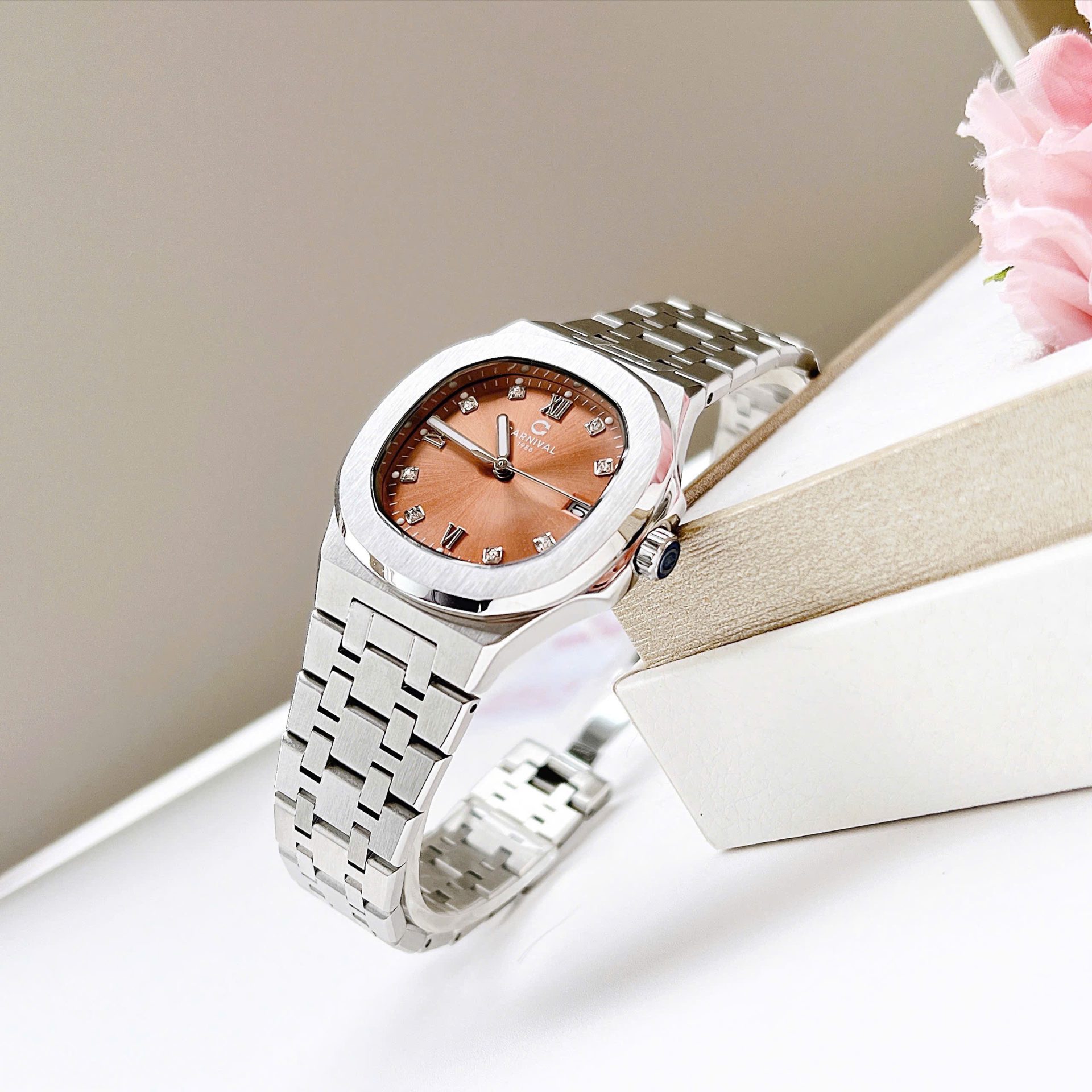 • Size mặt: 34mm – dễ đeo, phù hợp cổ tay nữ châu Á