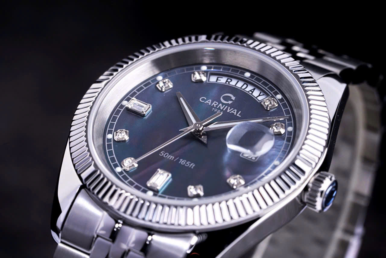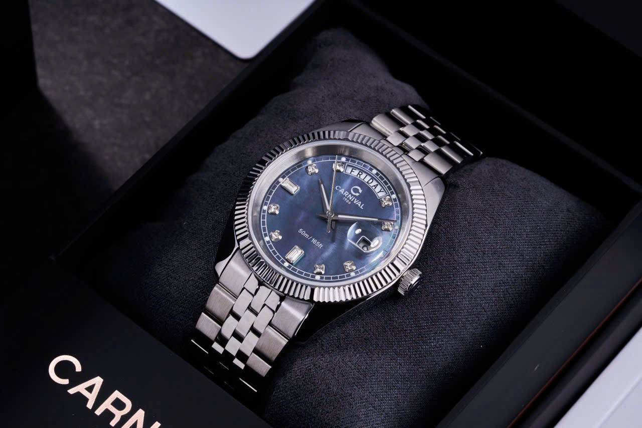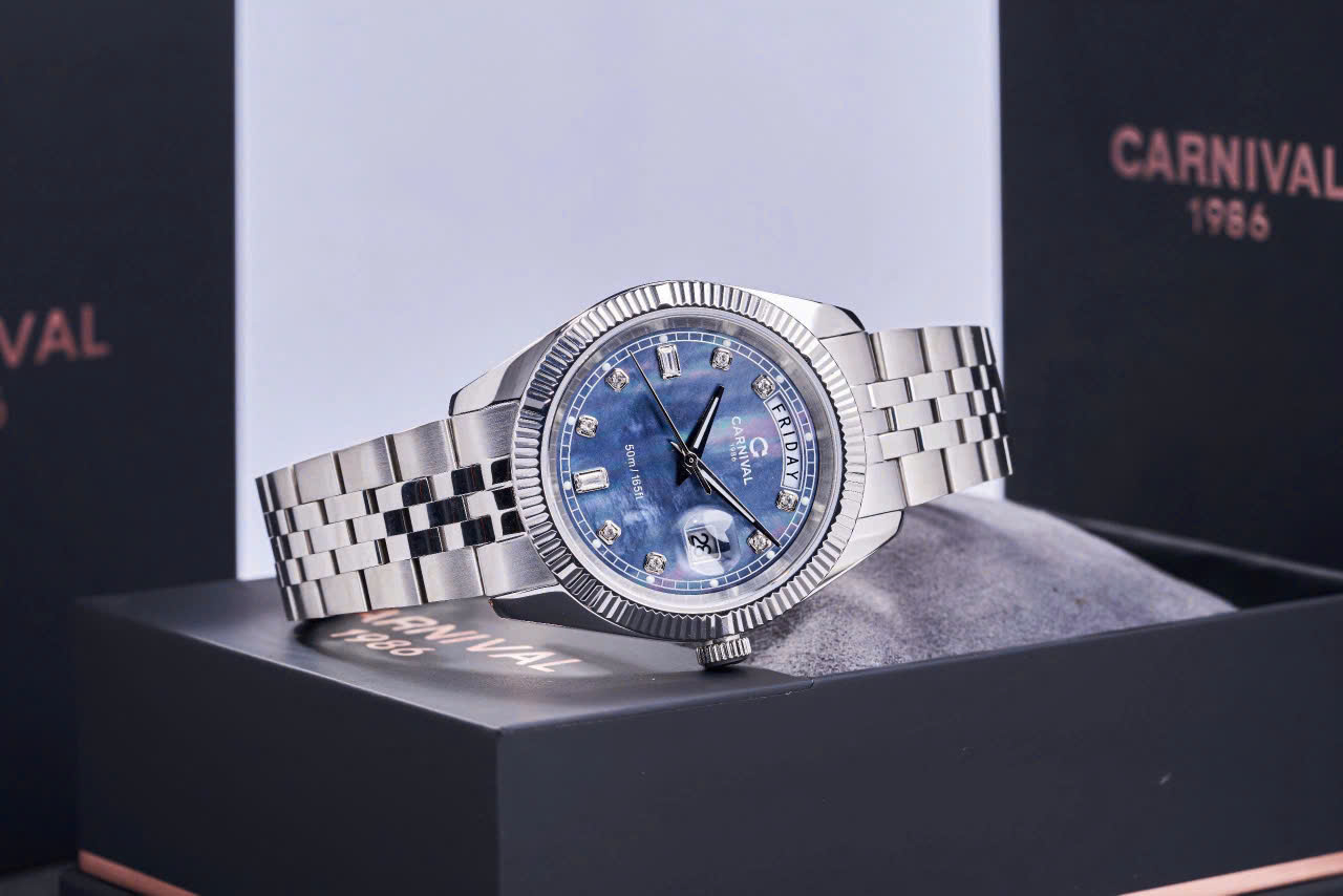 • Mặt số: Đính đá Swarovski – nổi bật từng chi tiết