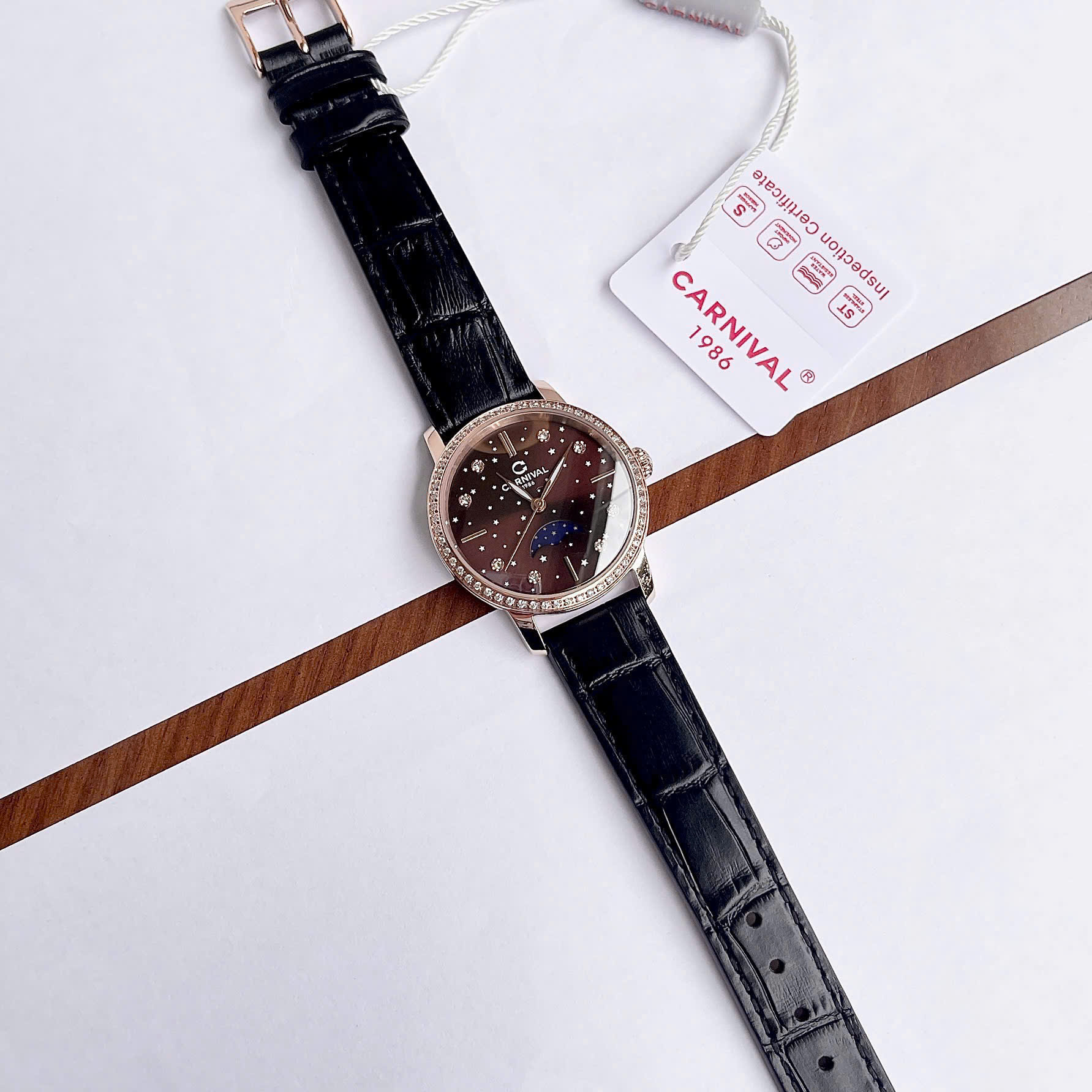 • Mặt số: Khảm đá sang trọng – Viền đính đá lấp lánh nổi bật