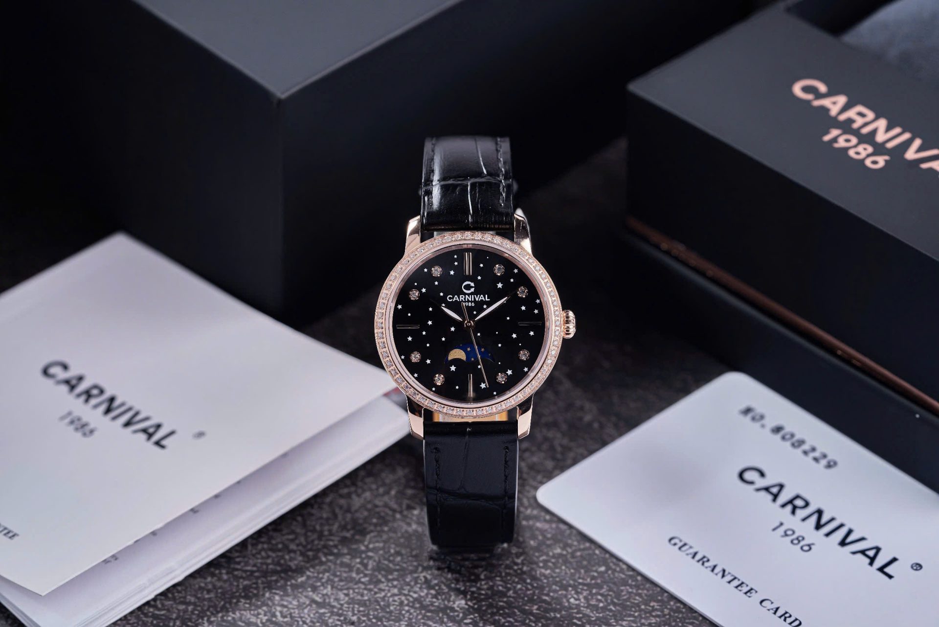 • Dây đeo: Da vân cá sấu đen – Sang trọng, dễ phối đồ, thoải mái khi đeo