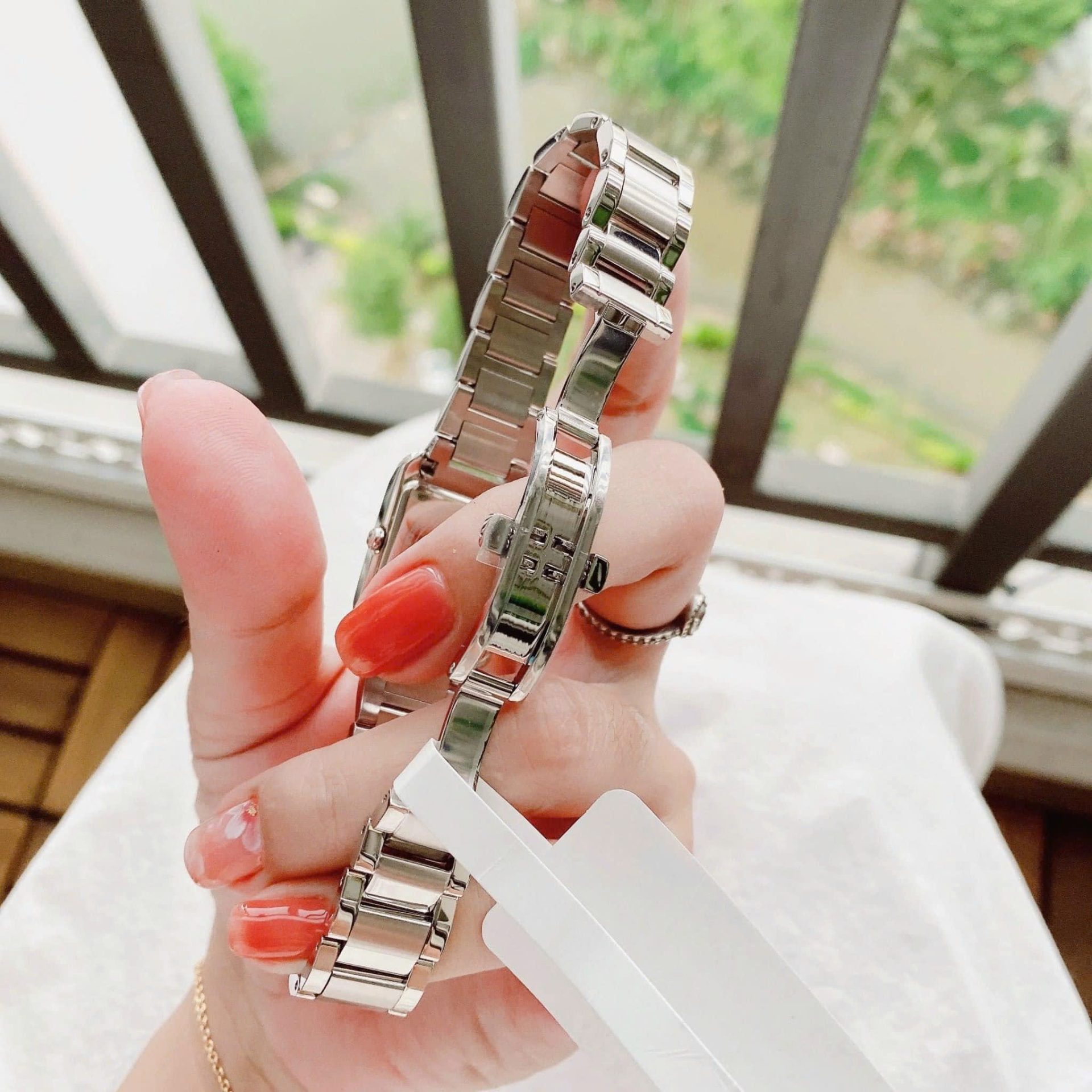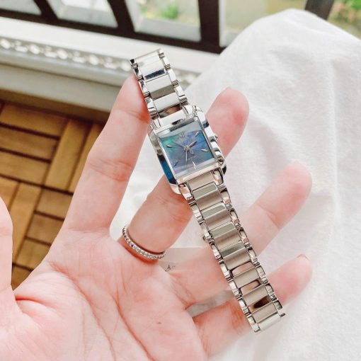 • Thiết kế: Dáng mặt chữ nhật cổ điển, dial khảm xà cừ (MOP) tạo hiệu ứng ánh ngọc sang trọng