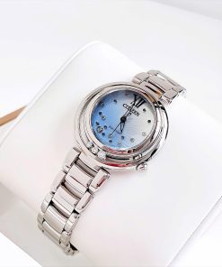 • Thiết kế: Mặt số khảm xà cừ xanh lam sang trọng, điểm xuyết 3 viên kim cương chuyển động tự do tạo điểm nhấn cuốn hút