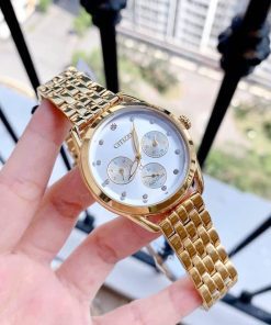• Chất liệu vỏ & dây: Thép không gỉ mạ PVD gold – Sáng bóng, sang trọng