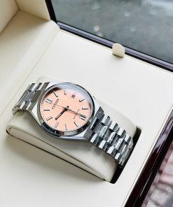Thiết kế: Mặt dial màu Salmon (cá hồi) thời thượng, nổi bật phong cách hiện đại