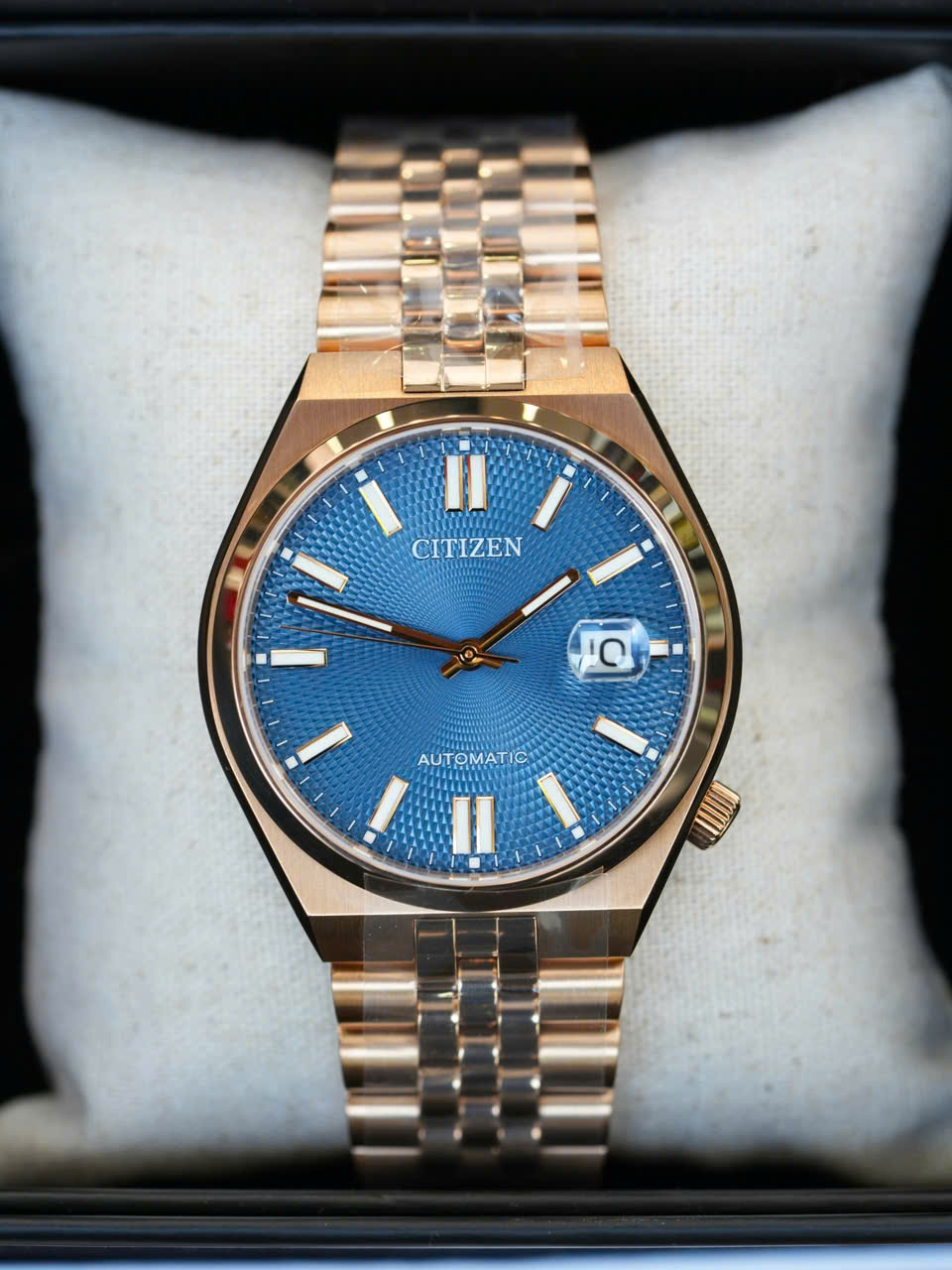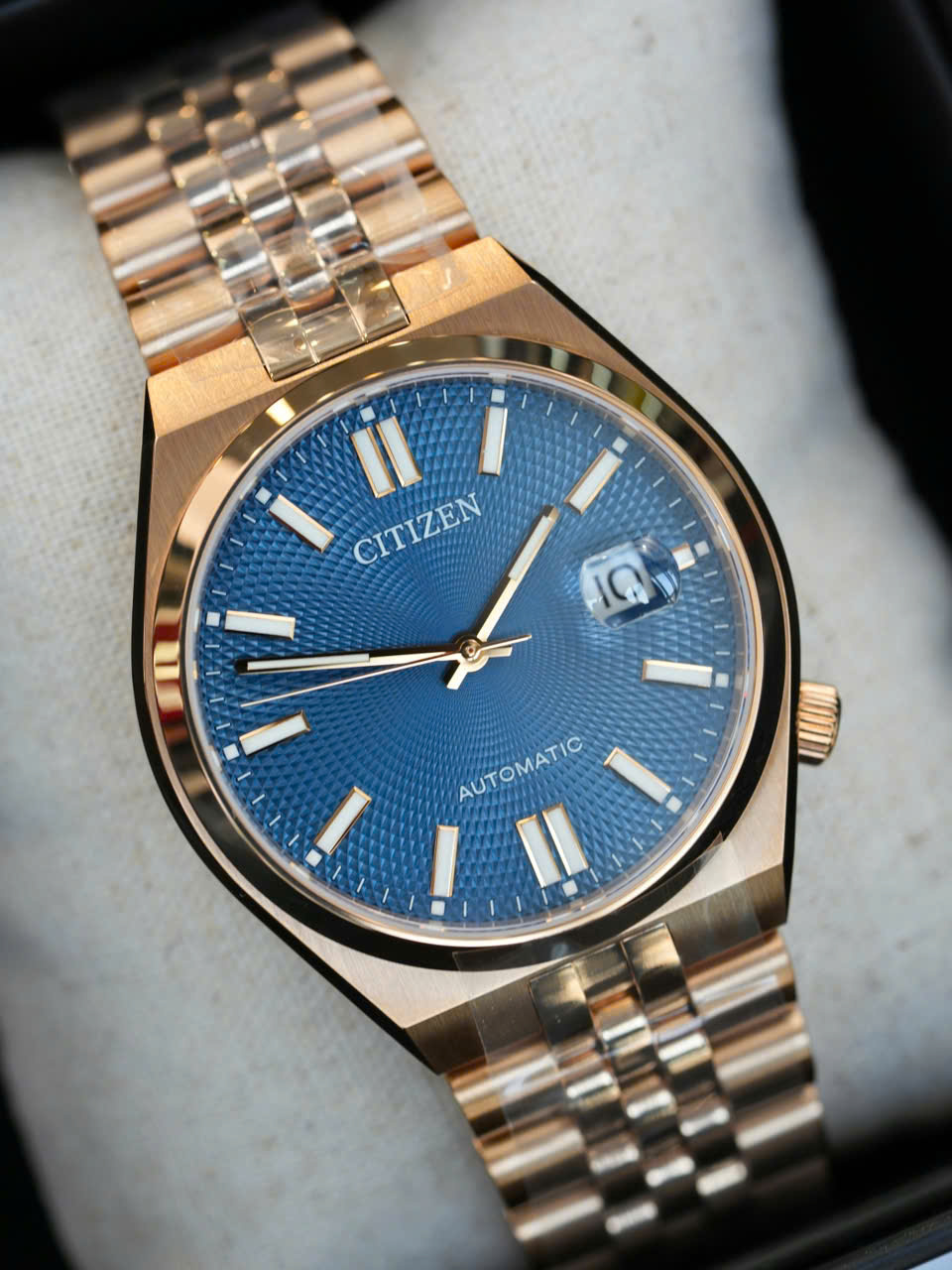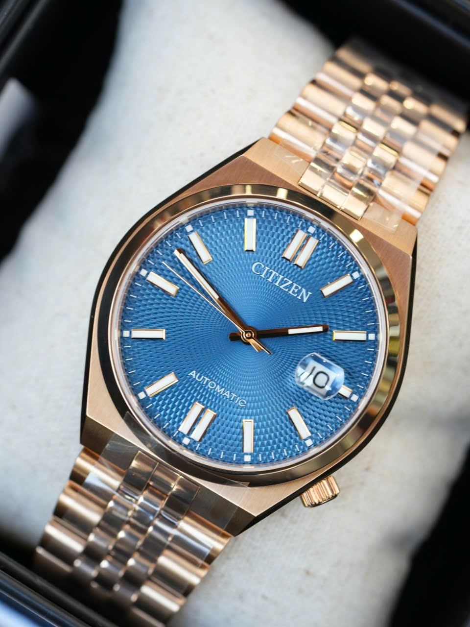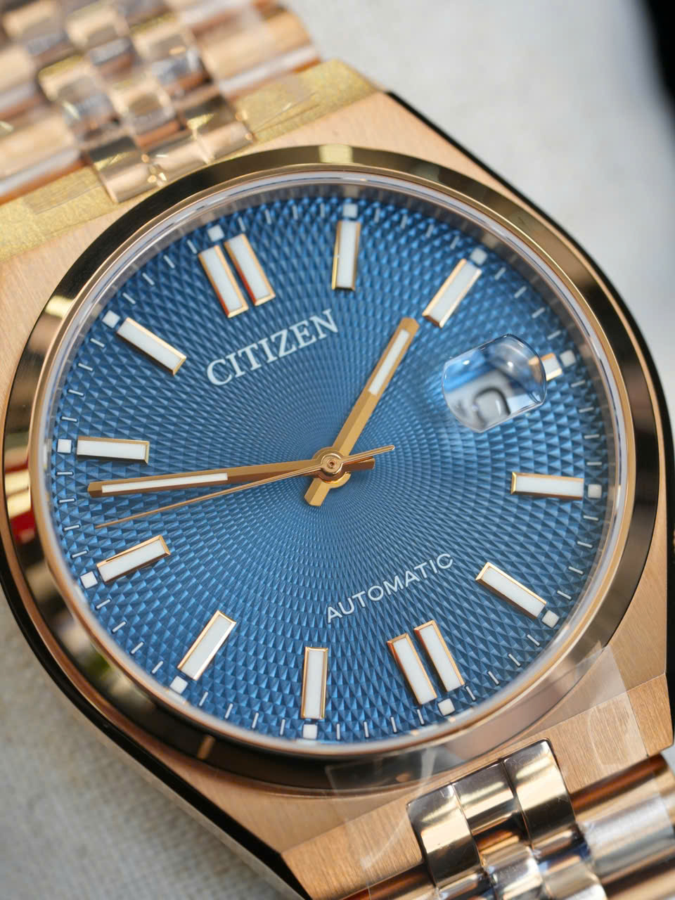 ✨ Citizen Tsuyosa NK0023-57L – Rose Gold Deep Blue, sang trọng với mặt Guilloché tinh xảo