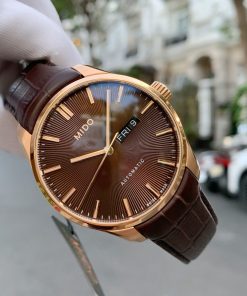• Thiết kế: Mặt nâu hiệu ứng sunburst sang trọng, viền đính đá nổi bật – lấy cảm hứng từ form R.L cổ điển