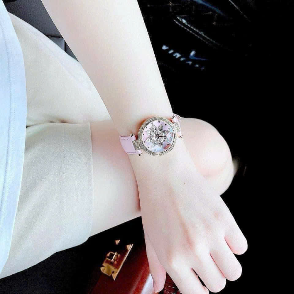 Dây: Dây da màu hồng tiểu thư, mềm mại dễ chịu khi đeo