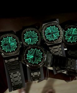 • Mặt số: Skeleton lộ cơ toàn bộ – bộ kim trắng có dạ quang siêu sáng, cực kỳ nổi bật