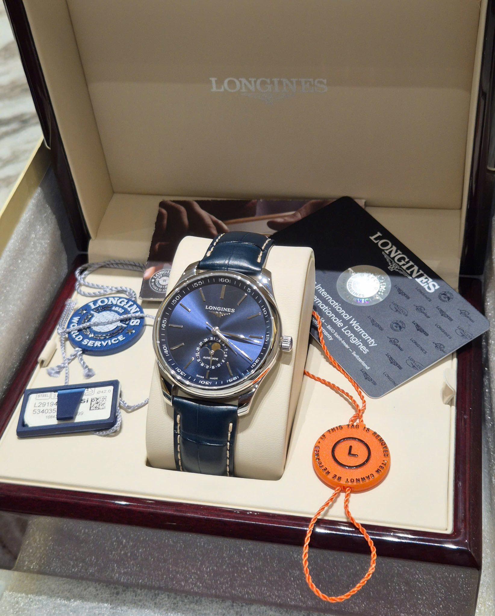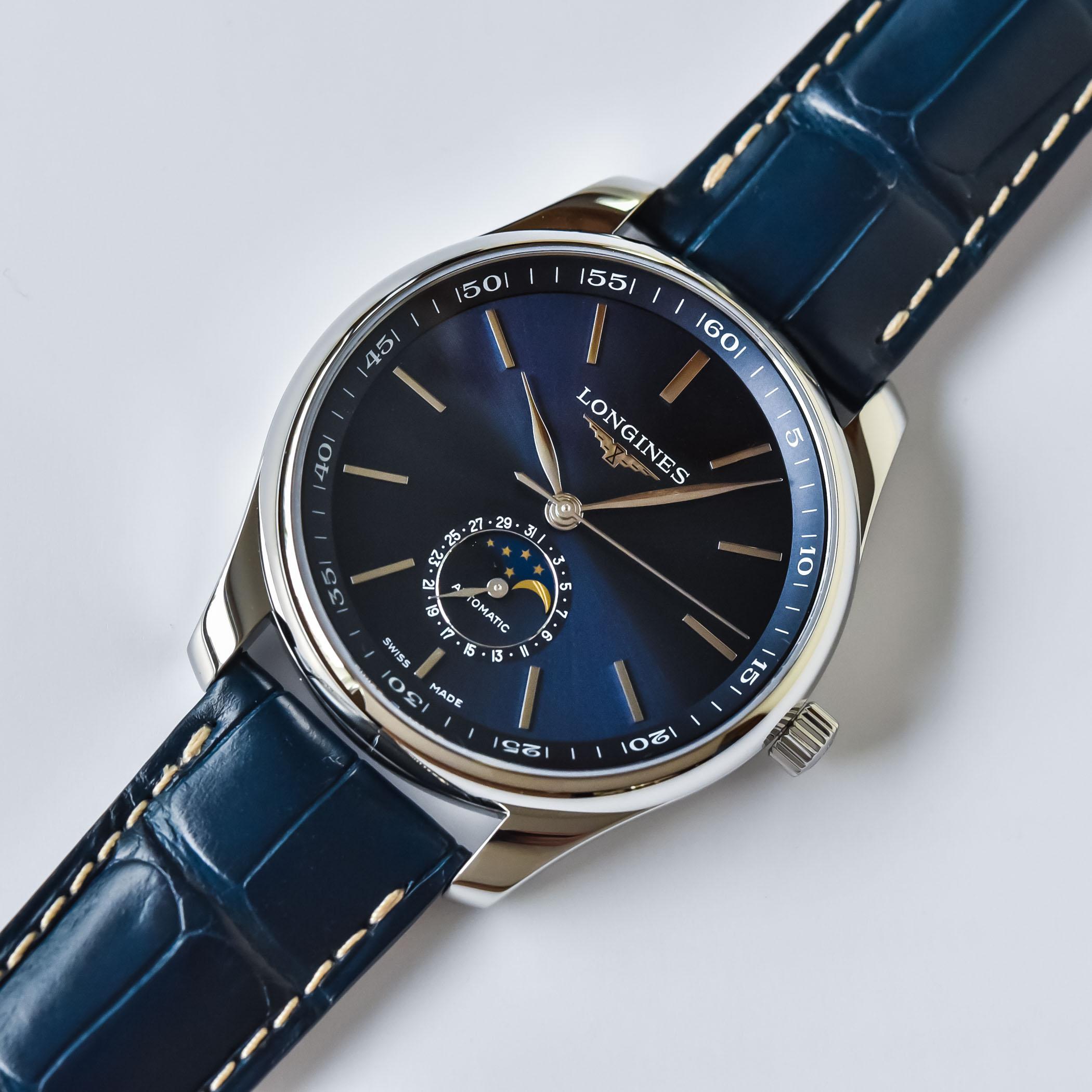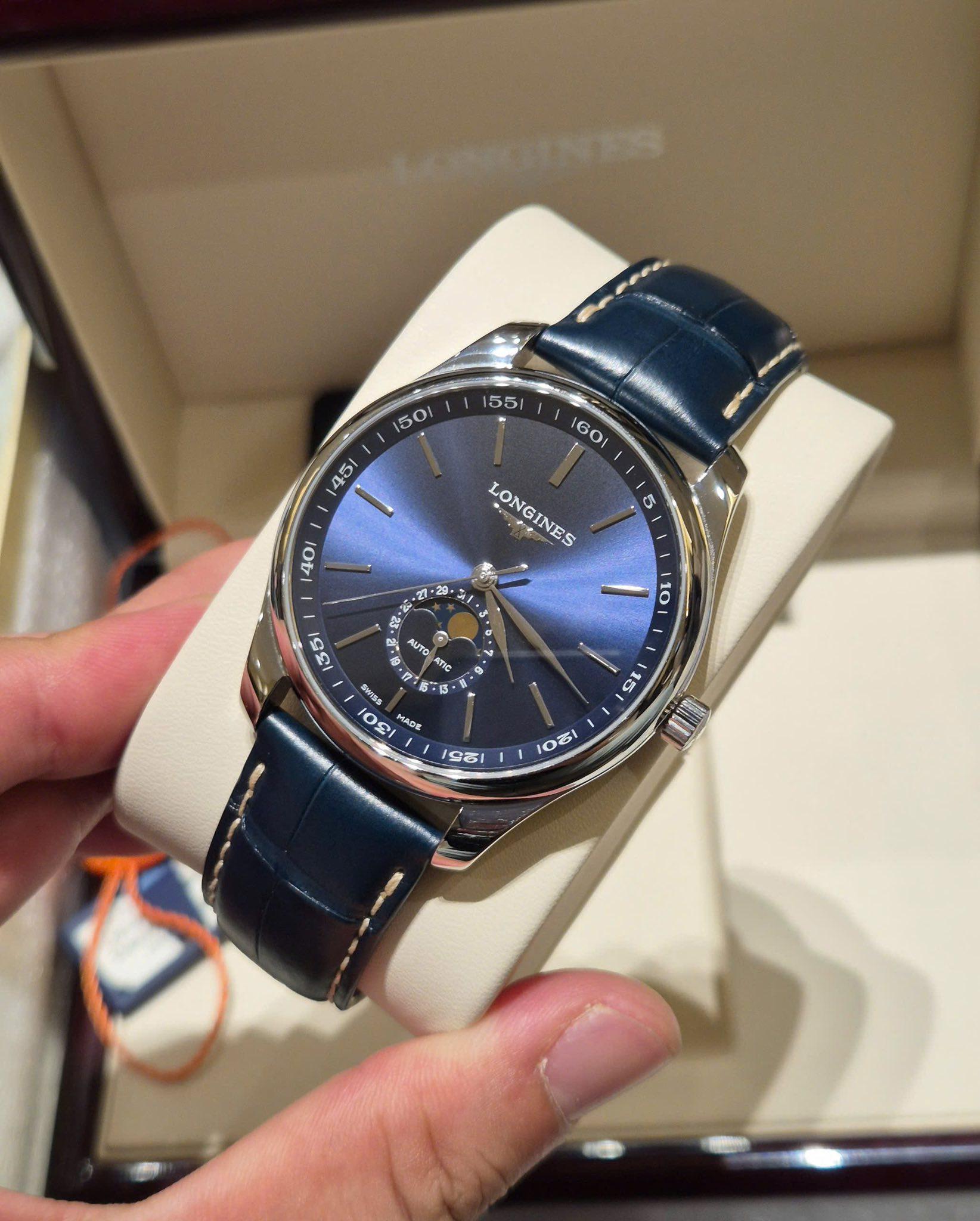 ✨ Longines Master Moonphase – Thanh lịch cổ điển, mặt xanh cuốn hút