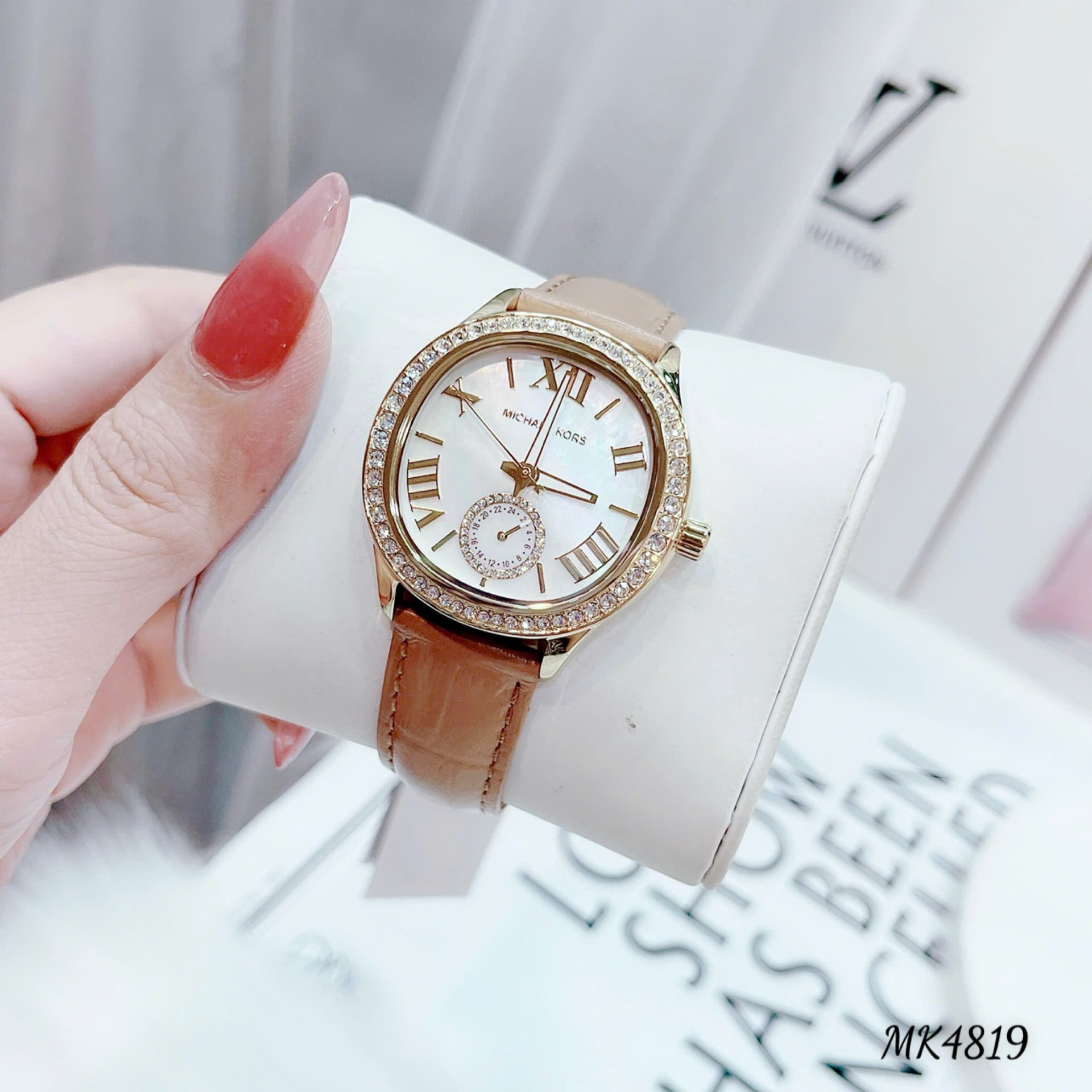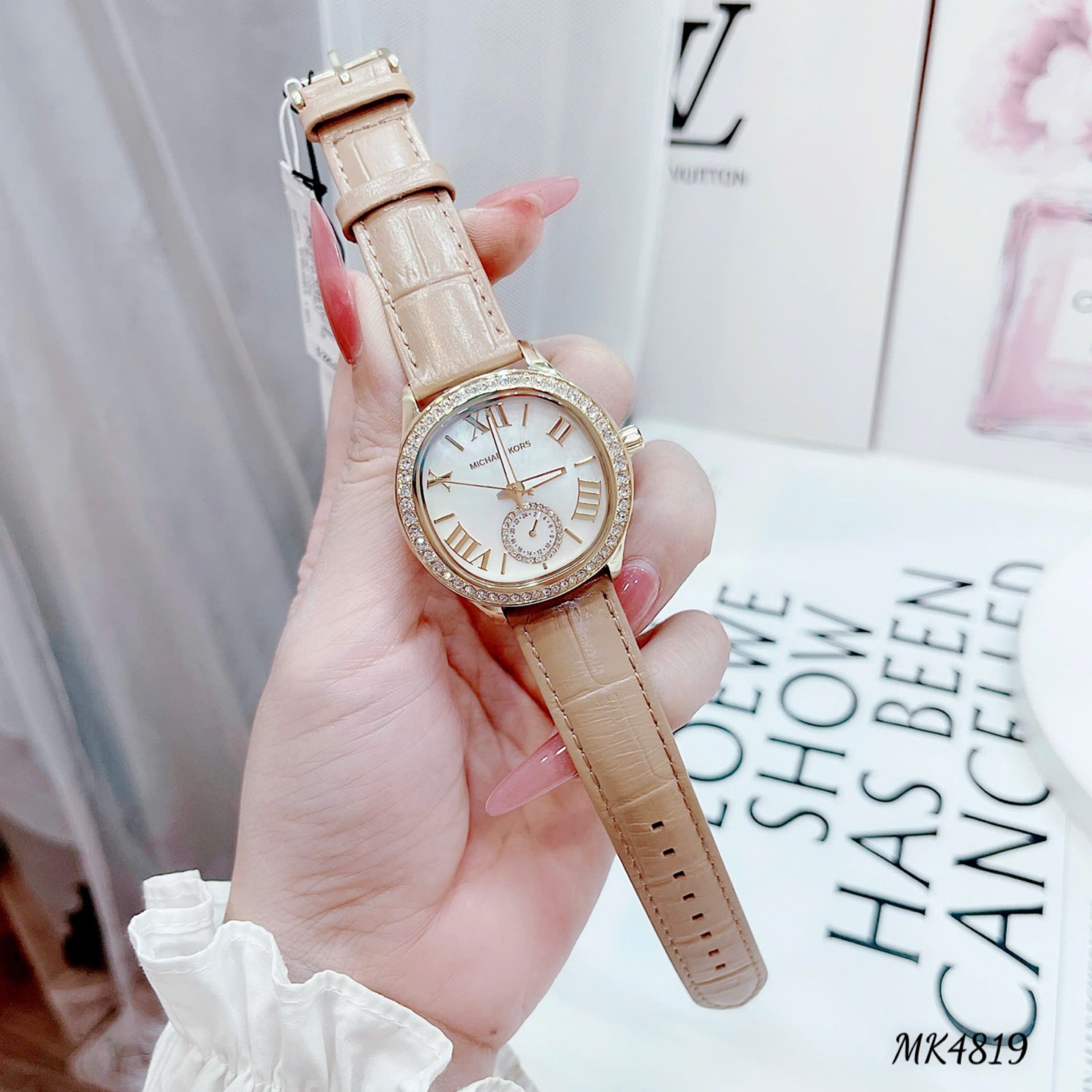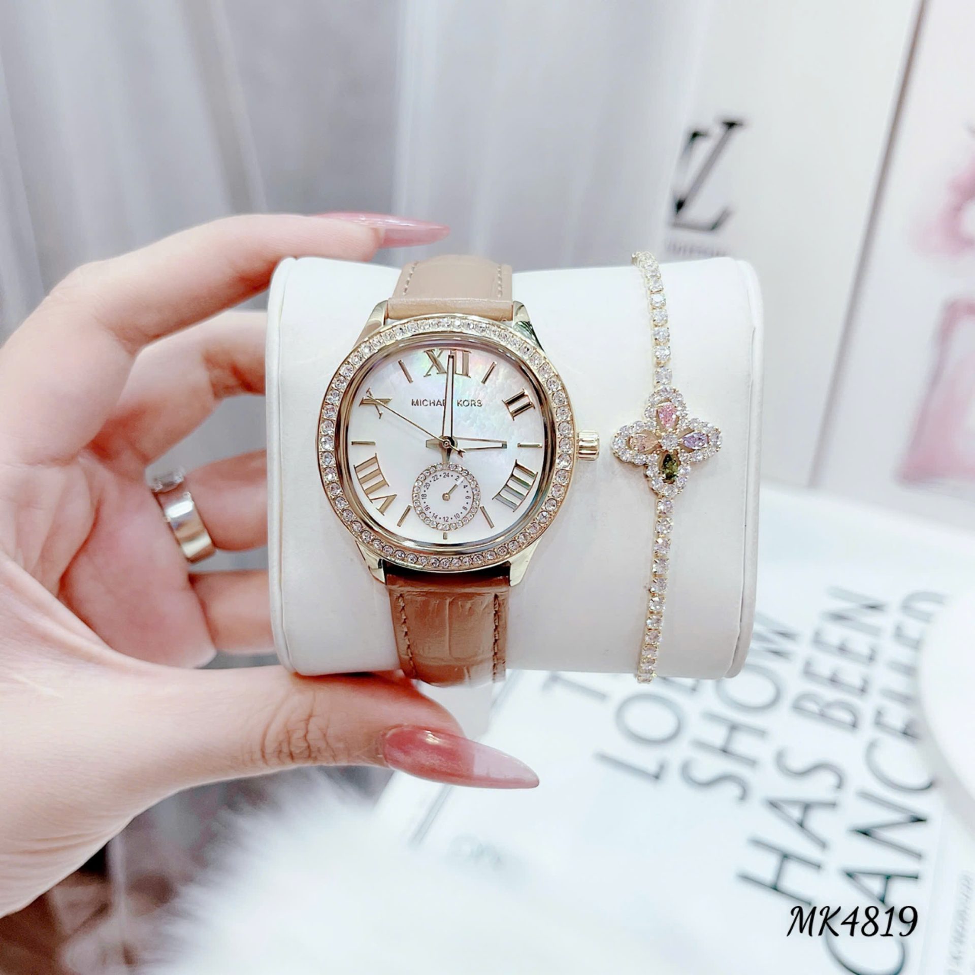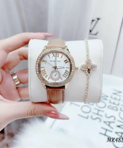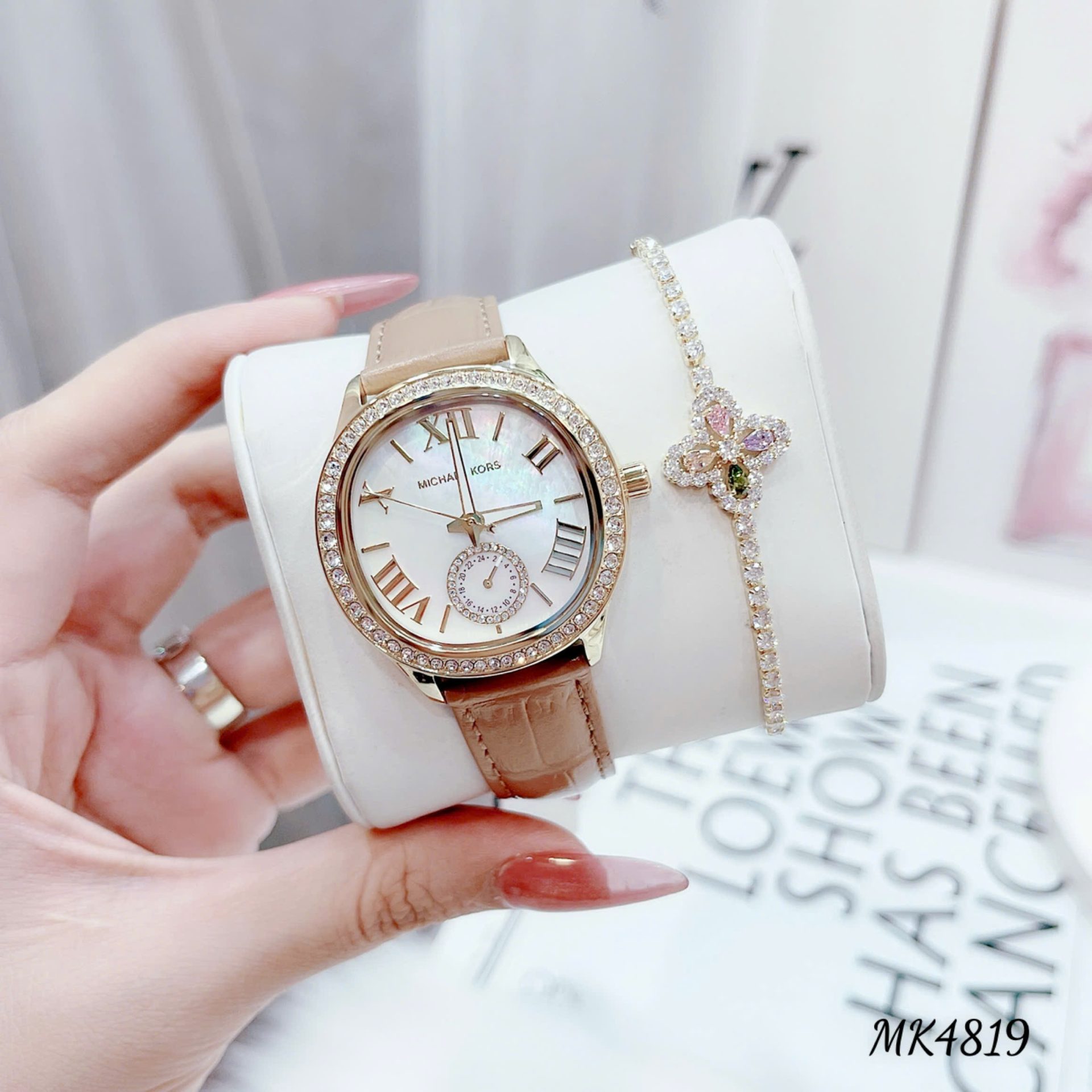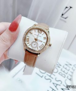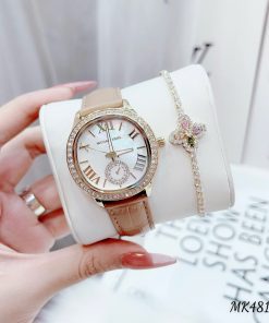 ✨ Michael Kors MK4820 / MK4819 – Pavé Gold-Tone & Dây Da Vân Cá Sấu