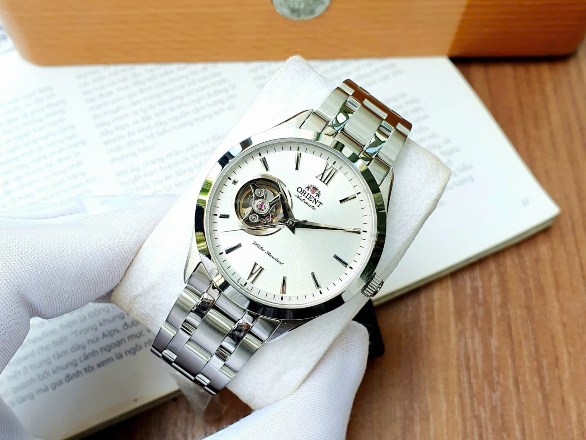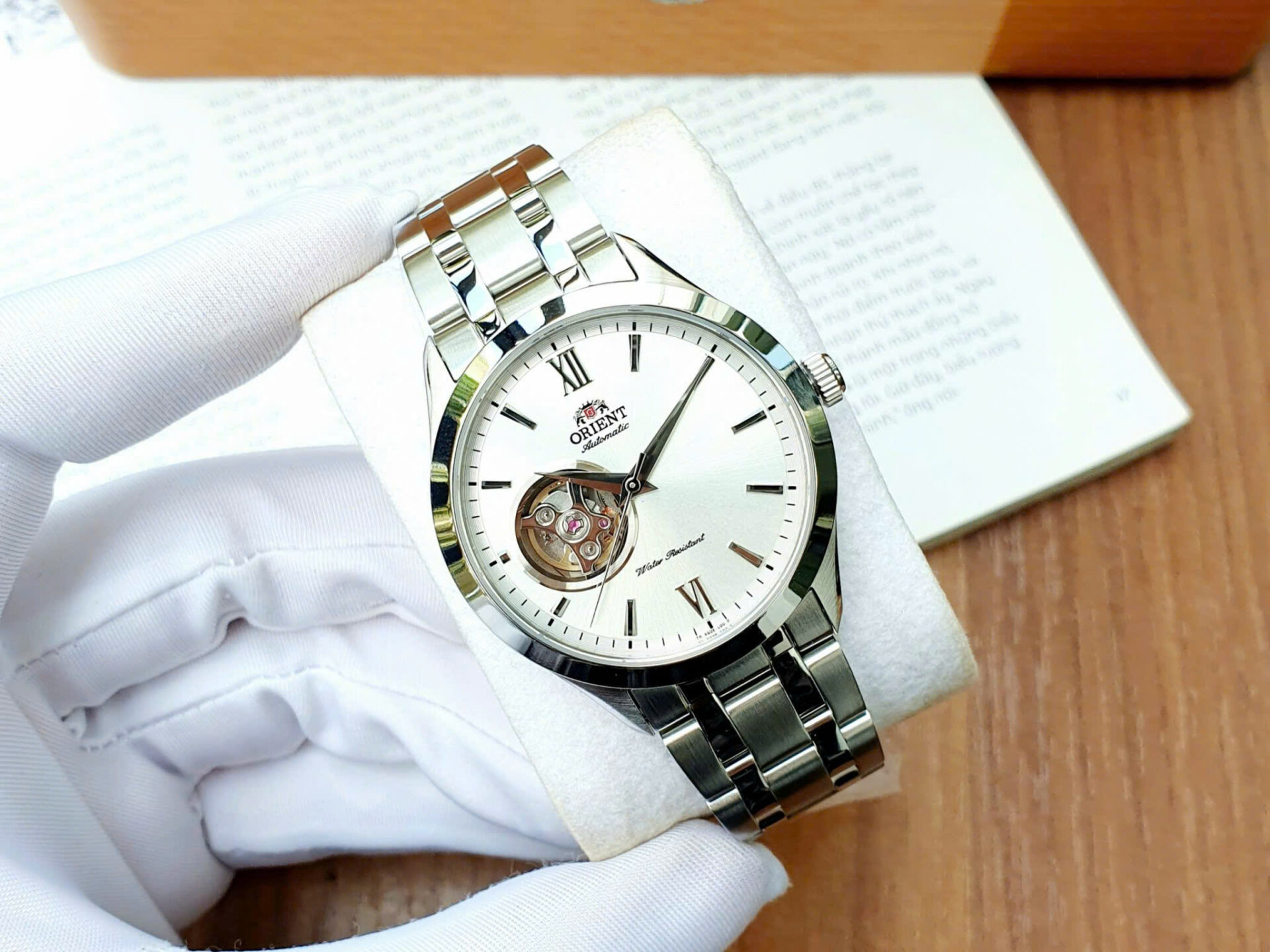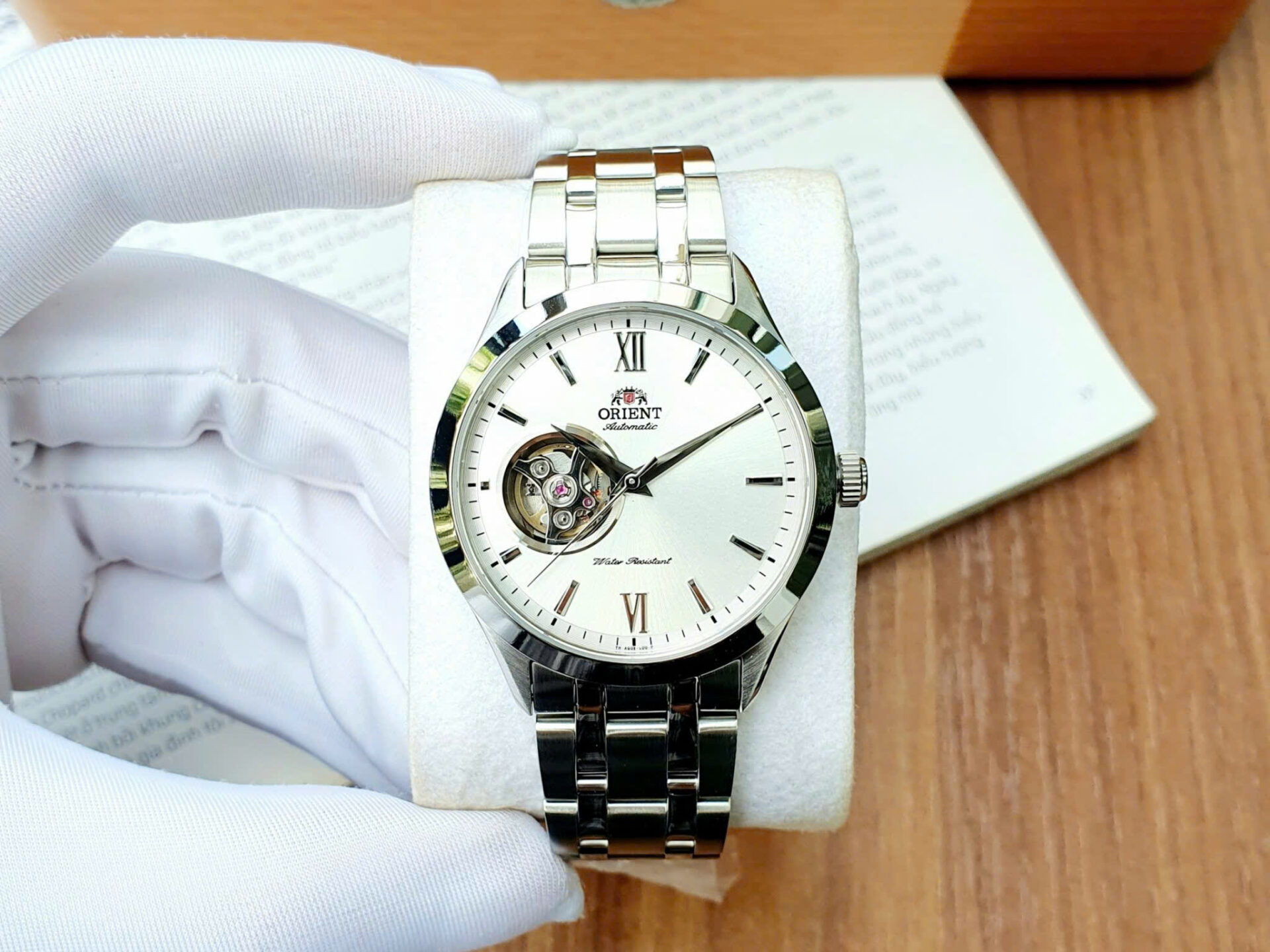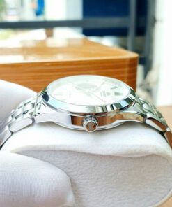 • Thiết kế: Mặt trắng thanh nhã – nổi bật với ô lộ cơ (open heart) lớn góc 9h, cho phép quan sát chuyển động bộ máy