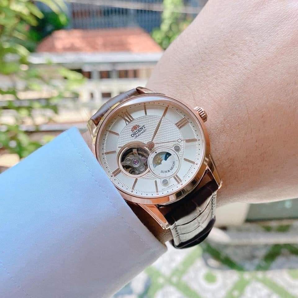 ✨ Orient Sun and Moon Gen 4 – RA-AS0009S10B (RN-AS0002S) – Thiết kế lãng mạn, tinh xảo với tính năng Sun & Moon đặc trưng, phối viền vàng hồng sang trọng.