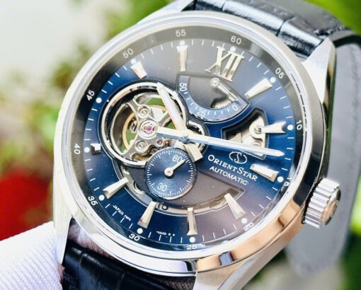 Orient Star Joker RE-AV0005L00B – Thiết kế mặt lộ cơ Joker độc đáo, phối màu xanh đầy cá tính, sang trọng và mạnh mẽ.